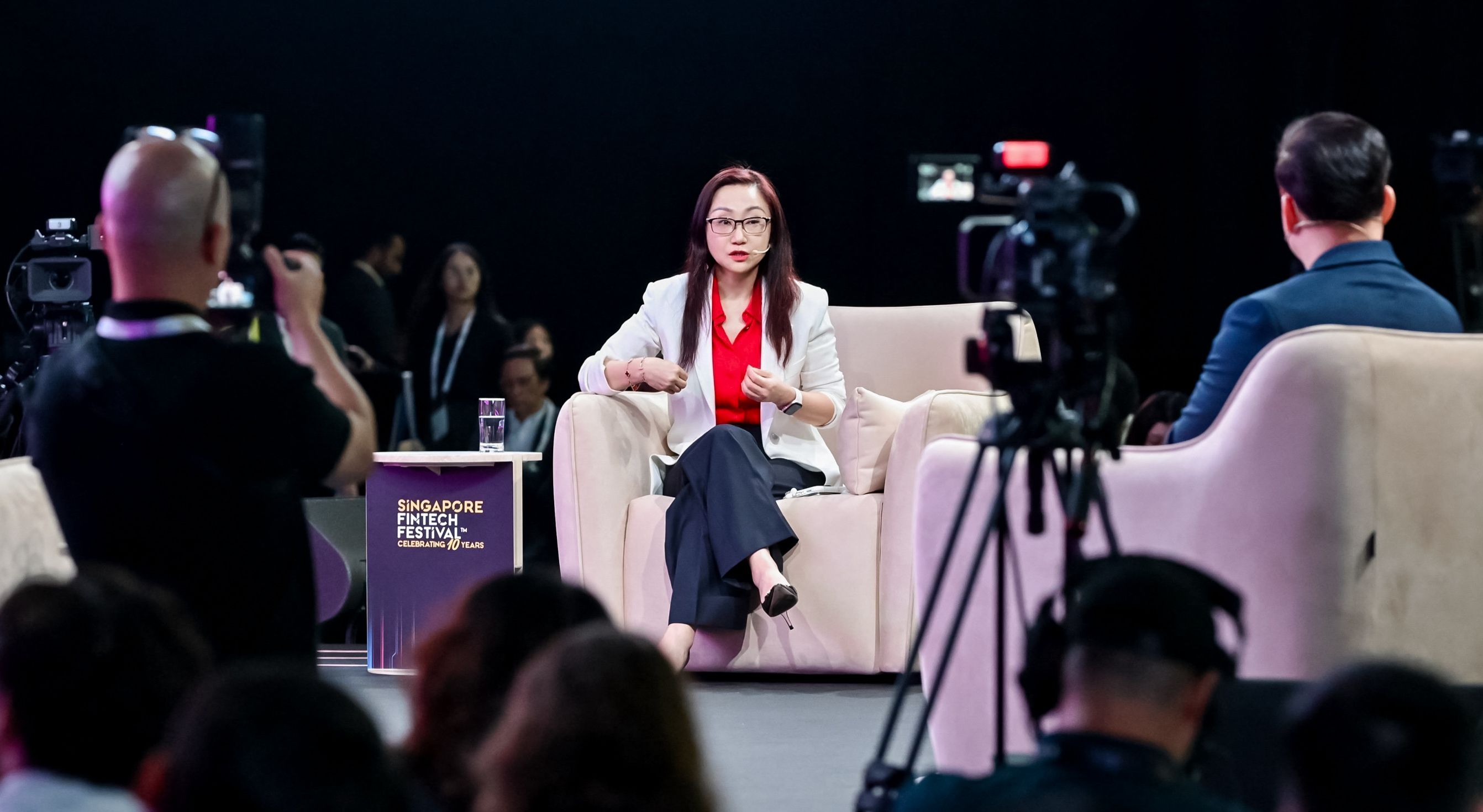 Quan Yu, General Manager of Global Credit Services at Ant International, speaking at the 2025 Singapore Fintech Festival.