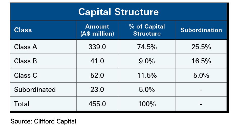 ING was issued the Class A notes, while the Class B and Class C notes have been allocated by Clifford Capital Asset Management to managed pools of capital. Clifford Capital retained the subordinated notes in compliance with EU retention requirements.